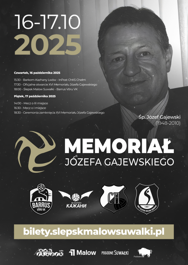 W Suwałkach zapowiada się wyjątkowe sportowe święto. Miejski Klub Sportowy Ślepsk Malow Suwałki Sp. z o.o. zaprasza wszystkich fanów siatkówki, mieszkańców regionu oraz sympatyków biało-niebieskich barw na XVI Memoriał Józefa Gajewskiego. To wydarzenie, które od lat gromadzi najlepsze drużyny i kibiców spragnionych sportowych emocji, w tym roku zyska także wymiar szczególnie szlachetny.